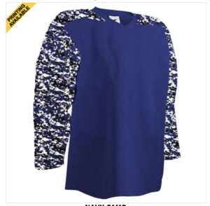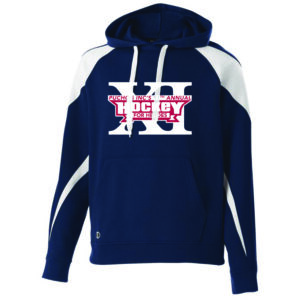 $50 – Navy Blue color with white accents and white laces. Hooded sweat shirt, made of cotton and polyester blend.
