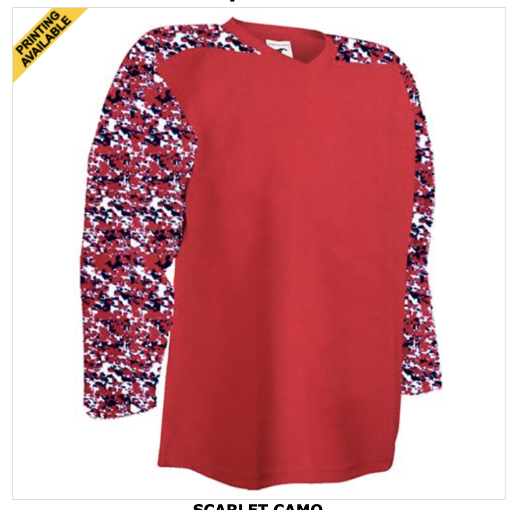 $40 – Separate red, white, blue, and black practice quality hockey jerseys.